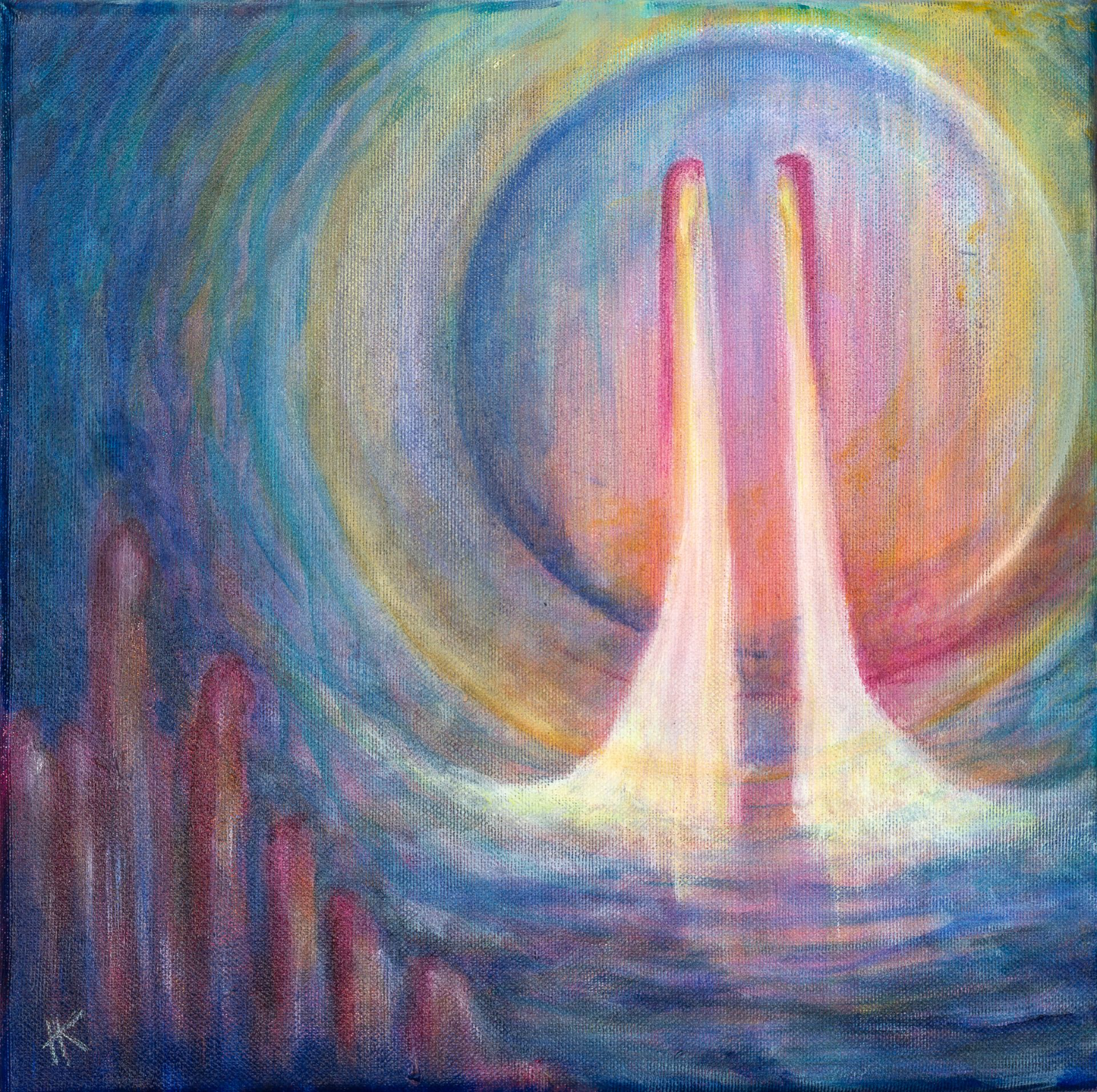 Katrien Hermans (Ramsel) vertrekt in haar schilderijen vanuit kleurensferen en zoekt al schilderend welk beeld zich wil tonen. Elk schilderij is een gebeurtenis; een transformatieproces van energie naar materie.